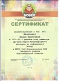 | Сертификат организатора конкурса по информатике "Бобёр", 2015 г. |